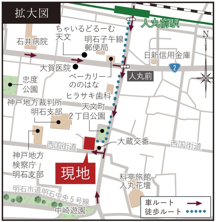 子午線が通る、明石市の司法の拠点エリアに立地する敷地。住まいはもちろん、オフィスやクリニックなど、事業用建物にもおすすめです。