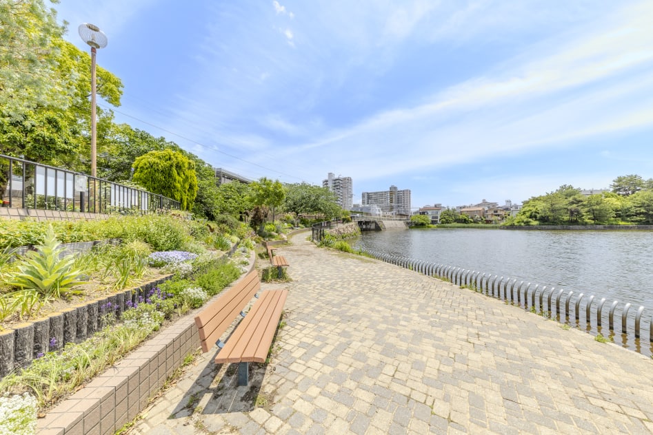 - 弁天池公園まで徒歩11分(約840m)。目の前に広がる弁天池を眺めながら、心安らぐ時間を過ごすことができます。阪急今津線の線路沿いにあり、走行する電車を間近に見られます。