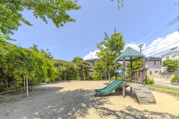 公園内には、砂場や滑り台、鉄棒が設置されています。現地から徒歩1分の距離で、お子様と一緒に毎日でも外遊びに出かけられそうです。