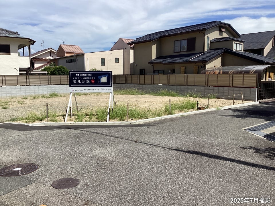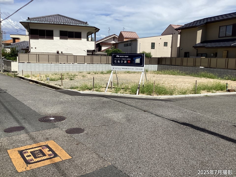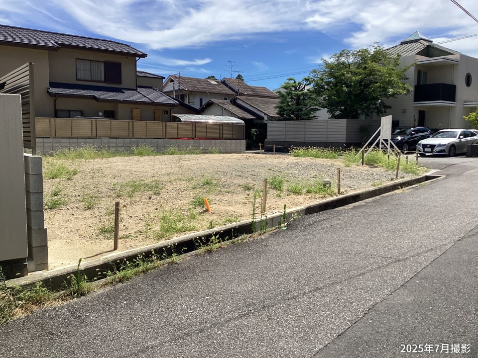 ゆとりある76坪超の角地を販売中です。並列2台の駐車スペースやガーデニングを楽しめるお庭など、ライフスタイルに合わせた住まい設計が可能です。/2025年7月撮影