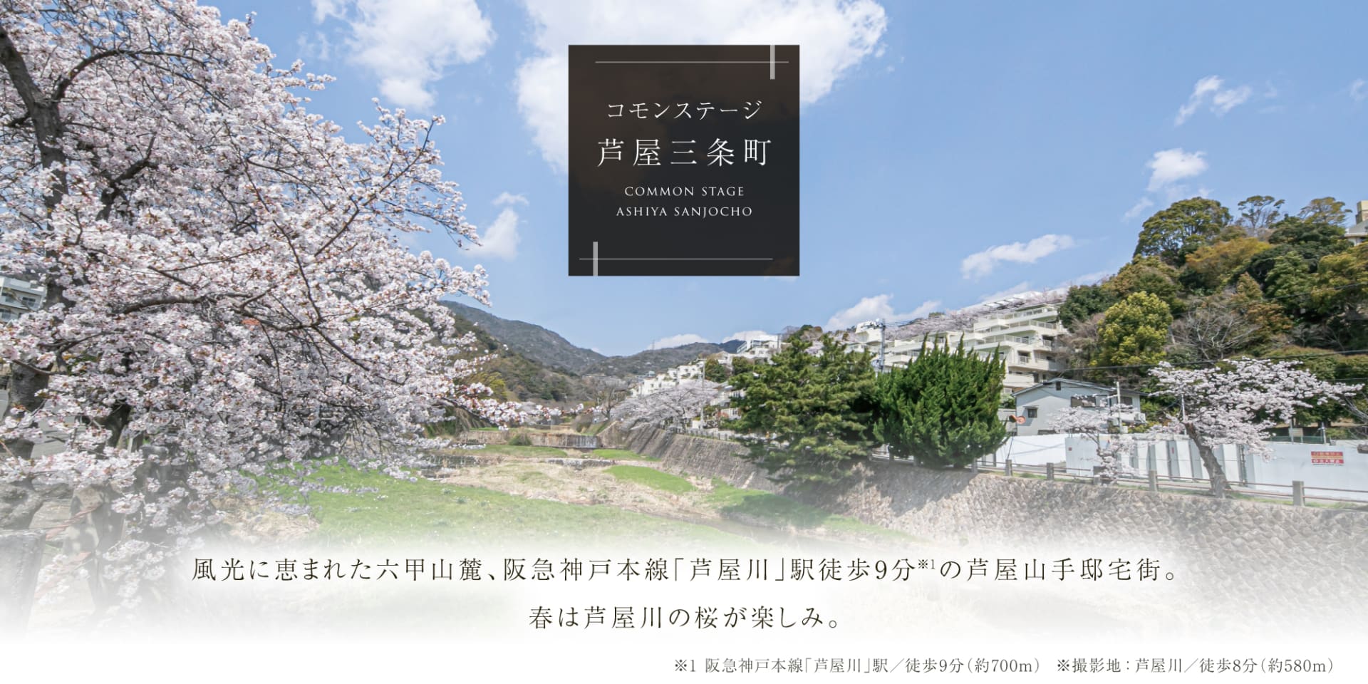阪急神戸本線「芦屋川」駅から「神戸三宮」駅まで12~14分、「大阪梅田」駅まで26~30分。