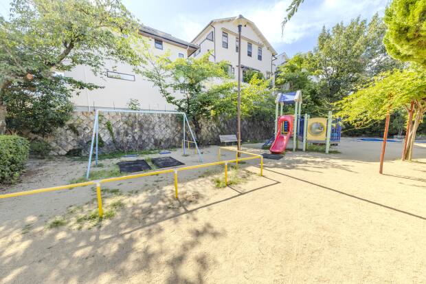 健康のための運動やお子様との外遊びに、気軽に出かけられる距離です。園内には滑り台などの複合遊具や、ブランコ、ベンチなどが設置されています。