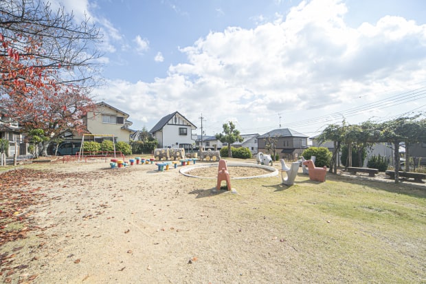 小さなお子様とも歩いて行きやすい距離にあります。ブランコや砂場、トンネル遊びも楽しめる蒸気機関車の遊具などが設置されています。