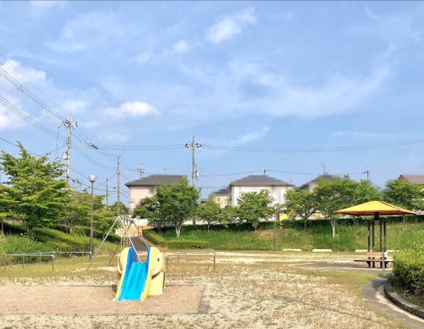 お子様との外遊びや、健康のためのウォーキングにも気軽に出かけられる距離です。園内には、砂場や滑り台、ブランコなどが設置されています。