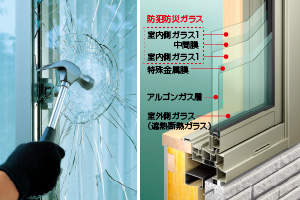 貫通しにくいガラスを採用した「防犯合わせ複層ガラスサッシ」