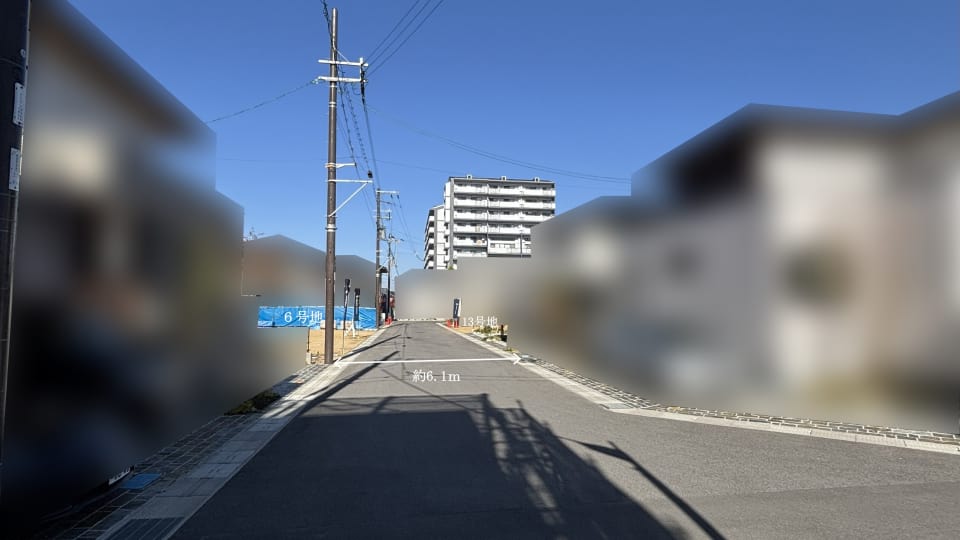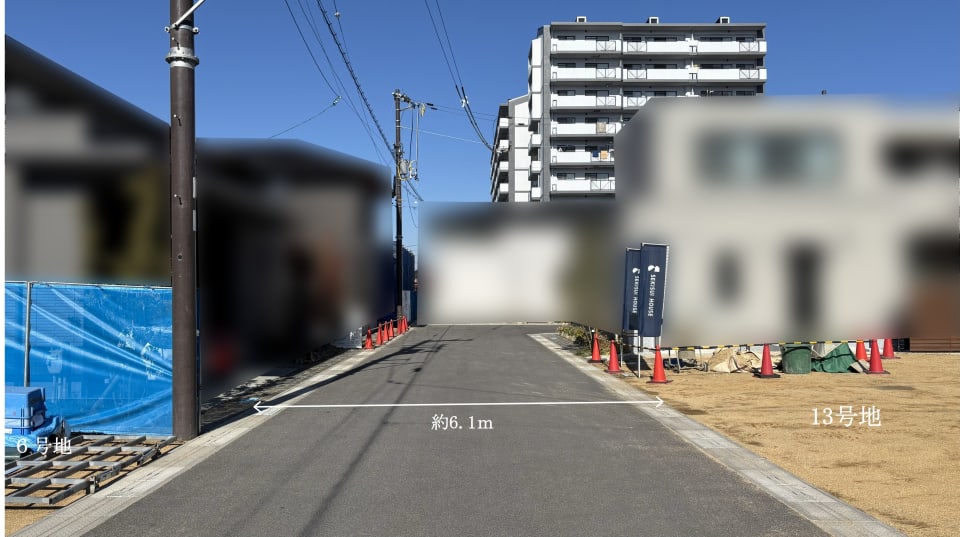 6号地、13号地前面道路を南から北に向かって望む。(2025年11月撮影)