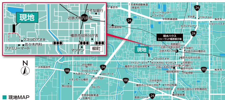 近鉄大阪線・橿原線「大和八木」駅から徒歩16分から18分、大阪方面へのアクセスも便利な街となっております。 小、中学校、スーパーやドラッグストア、地元のクリニック等、徒歩15分以内に日々の暮らしに役立つ施設があり、 多くの世代の方に利便性を感じていただける立地です。