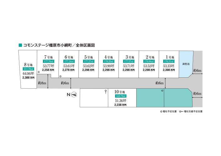 ■全区画50坪以上、前面道路は6mあり、ゆとりを感じる区画割