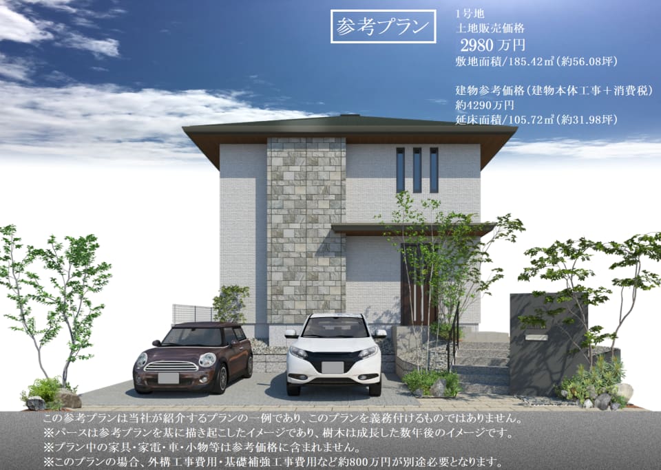 【1号地参考プラン/外観パース】