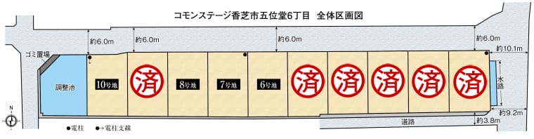 近鉄大阪線「五位堂」駅まで徒歩8分、JR和歌山線「JR五位堂」駅まで徒歩6分、総区画数10区画、今回販売区画数1区画。