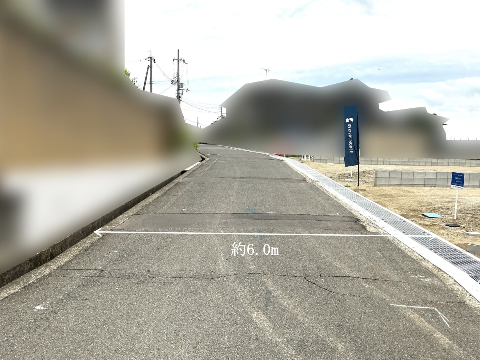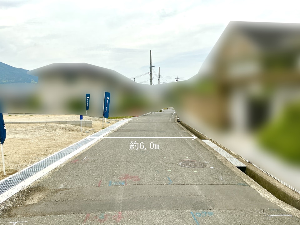 分譲地の前面道路を西側から東側に望んだ写真です。(2025年5月撮影)