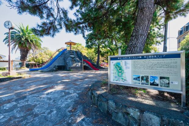 和歌山城の南側に位置する、自然と歴史に彩られた公園。遊具のほか和歌山市を走っていた、蒸気機関車(SL)や路面電車も保存展示されています。