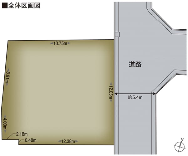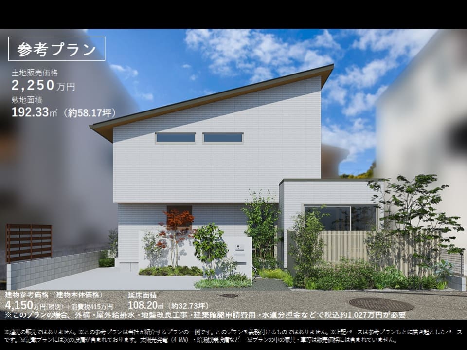 販売価格:2250万円、土地面積:192.33㎡(約58.17坪)、東向きの土地です。