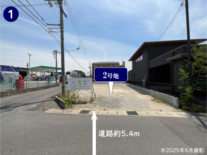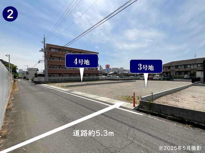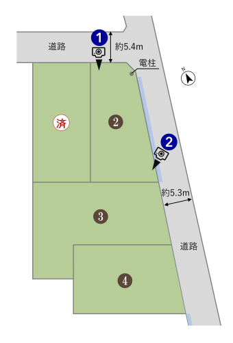 全4区画の分譲地/道路幅員北側約5.4m・東側約5.3m