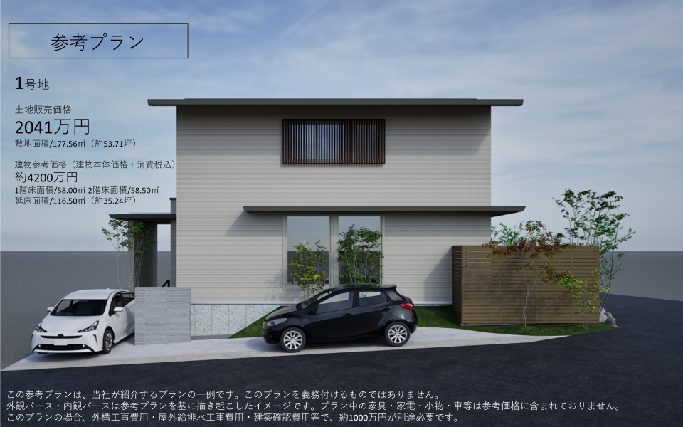 【1号地参考プラン/外観パース】