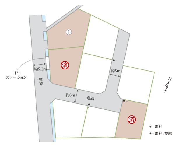 【1号地参考プラン:外構付き平面図】 建物参考価格(建物本体価格+消費税込) 約4,180万円(このプランの場合、外構工事費用、屋外給排水工事費用、地盤改良費用などで、約750万円が別途必要です。)