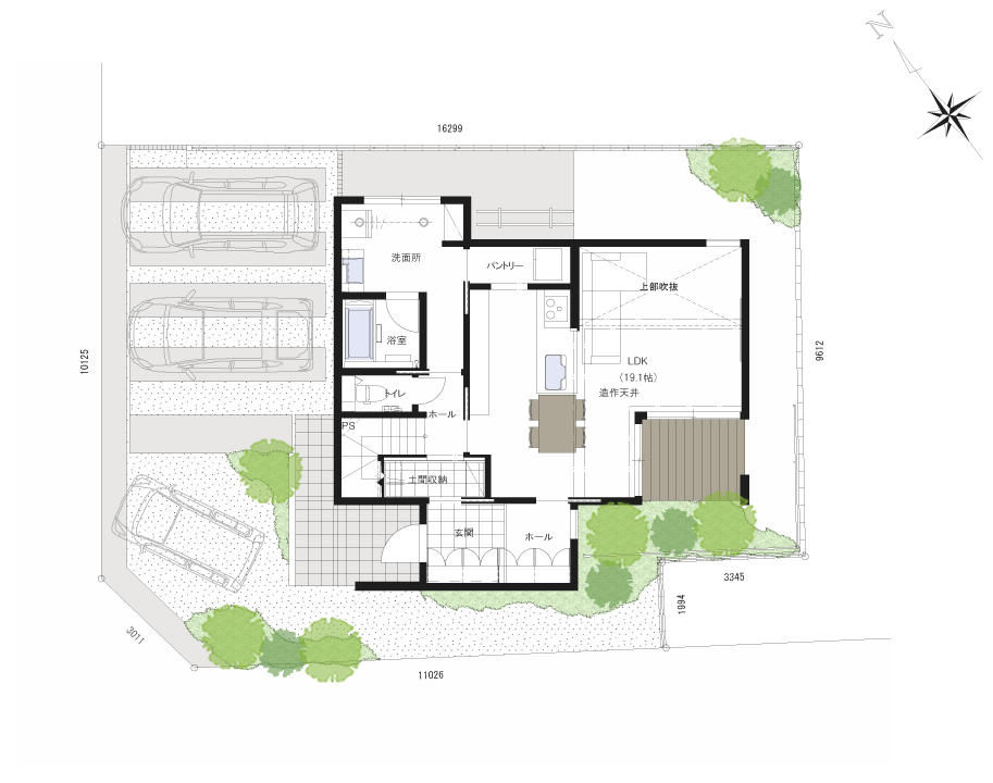 ※パースに描かれている樹木は、成長した数年後のイメージです。