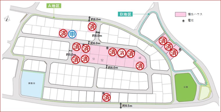 以下の号地は、現在申込が入っております。詳細についてはお問い合わせ願います。