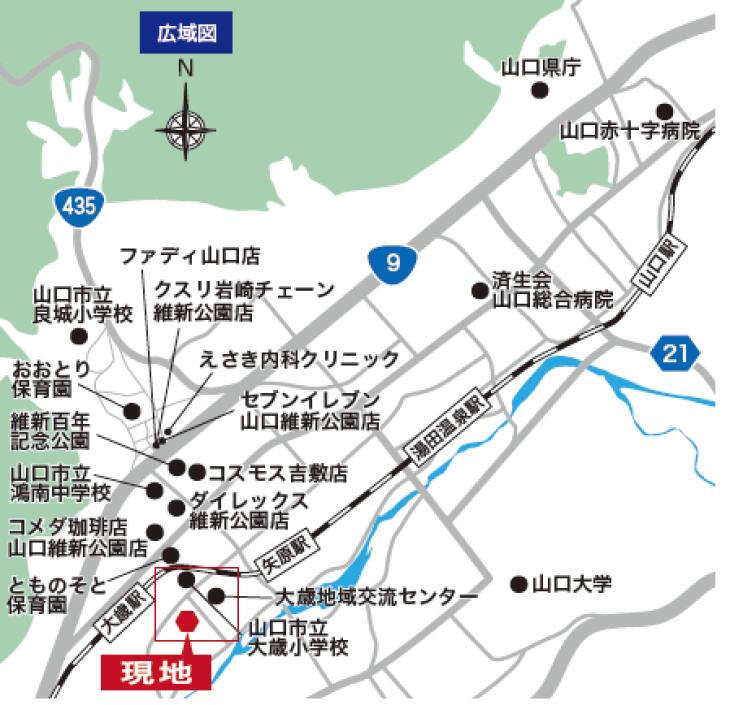 山口市大歳にて分譲中!保育園、小学校、駅が徒歩10分圏内に揃っています。