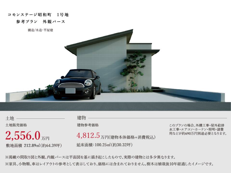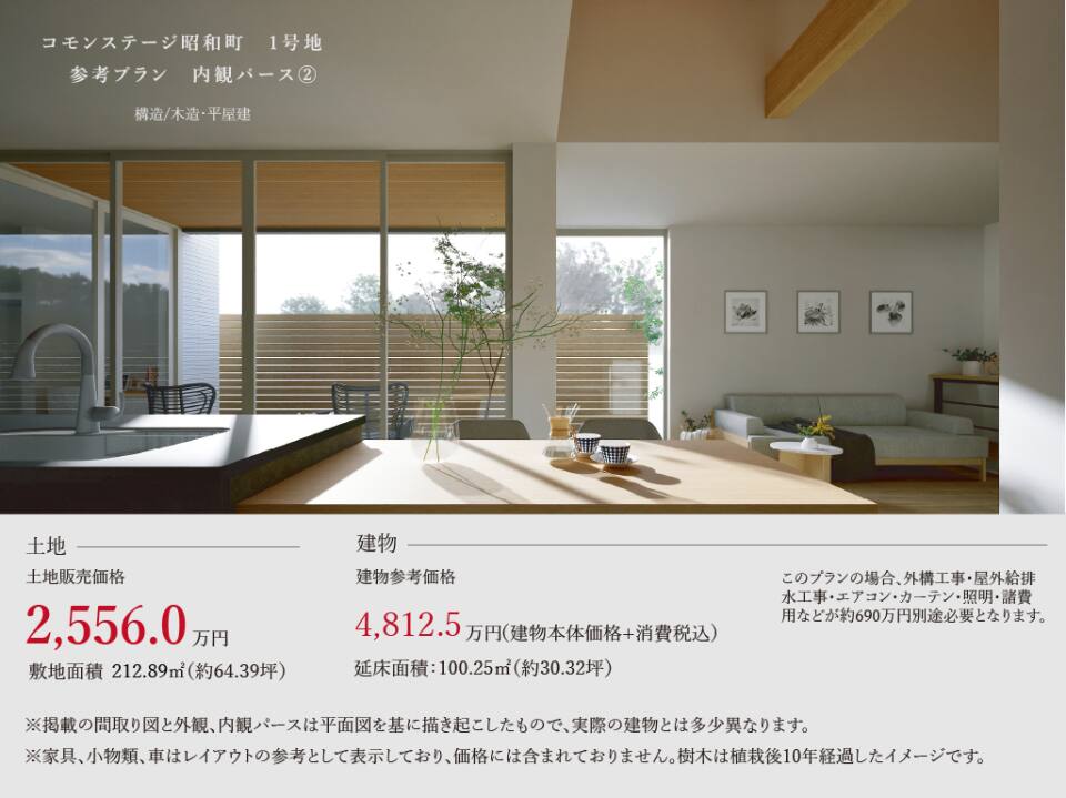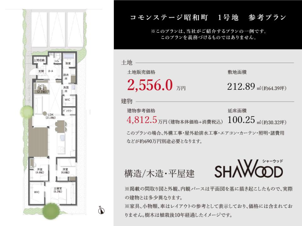 土地価格2,556.0万円/建物参考価格4,812.5万円(建物本体価格+消費税込)