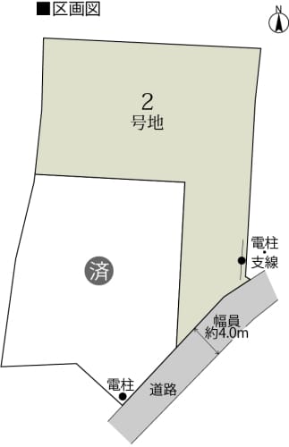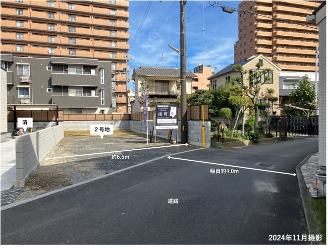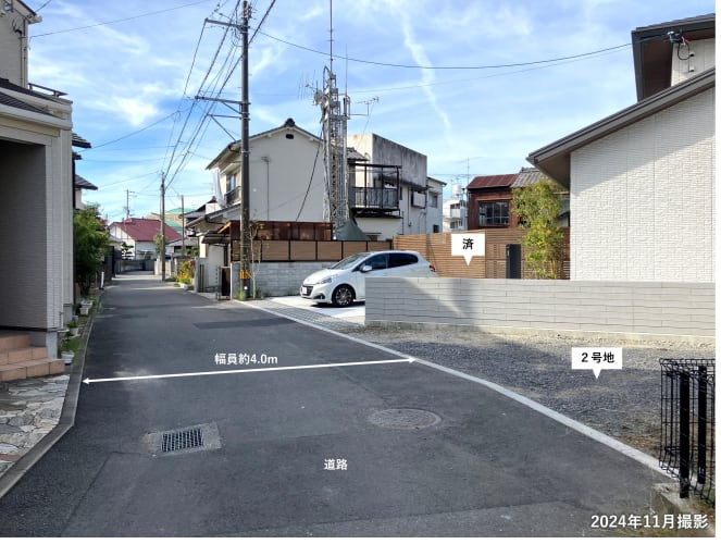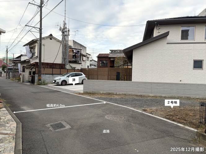 ![]() 2号地前面道路写真 敷地前面の道路は幅員約4.0mです。 |
