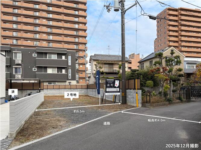 ![]() 2号地現地写真 土地の間口は約6.5mありますので、並列2台分の駐車スペースと玄関までのアプロ―チが確保できる幅があります。 |