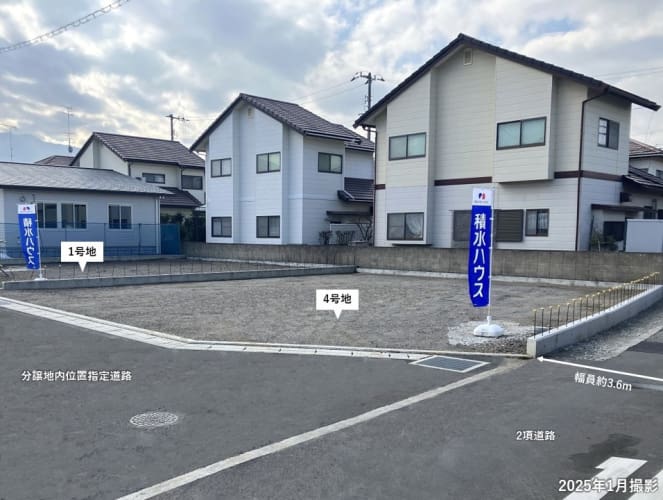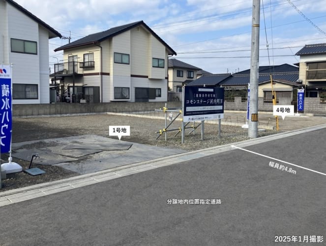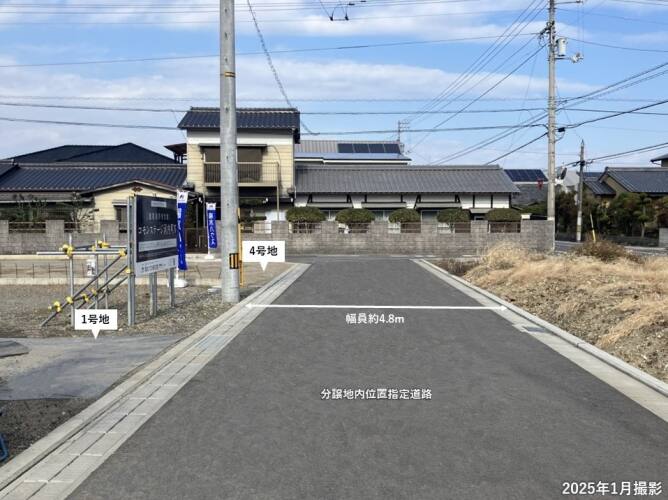 ![]() 分譲地内の位置指定道路は、幅員約4.8mです。 |