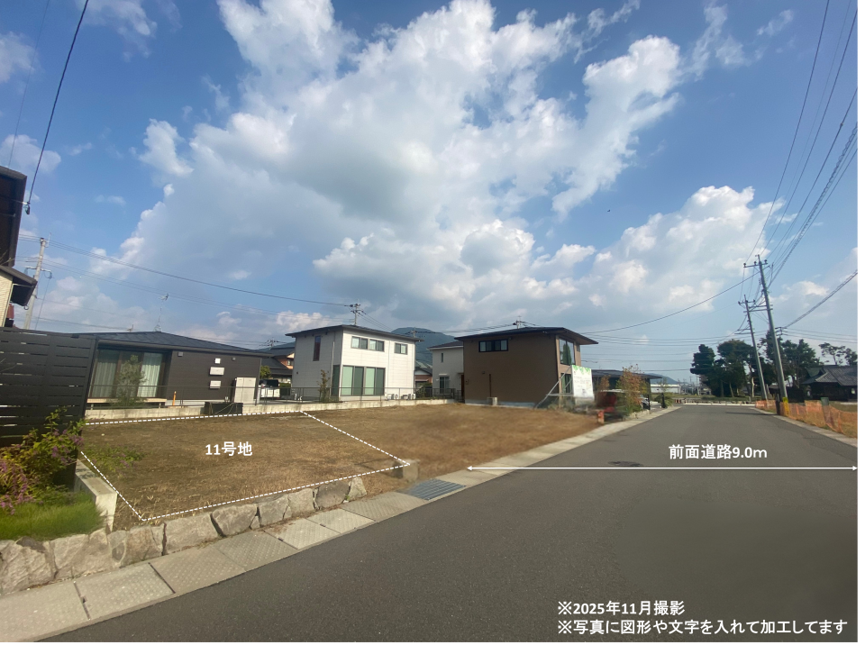 【11号地】道路との高低差も少なく、外構計画で階段が少なく計画できるので、将来も安心してお過ごしいただけます。