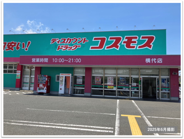 医療品をはじめ、生活必需品が豊富で便利なドラックストア。2025年6月撮影