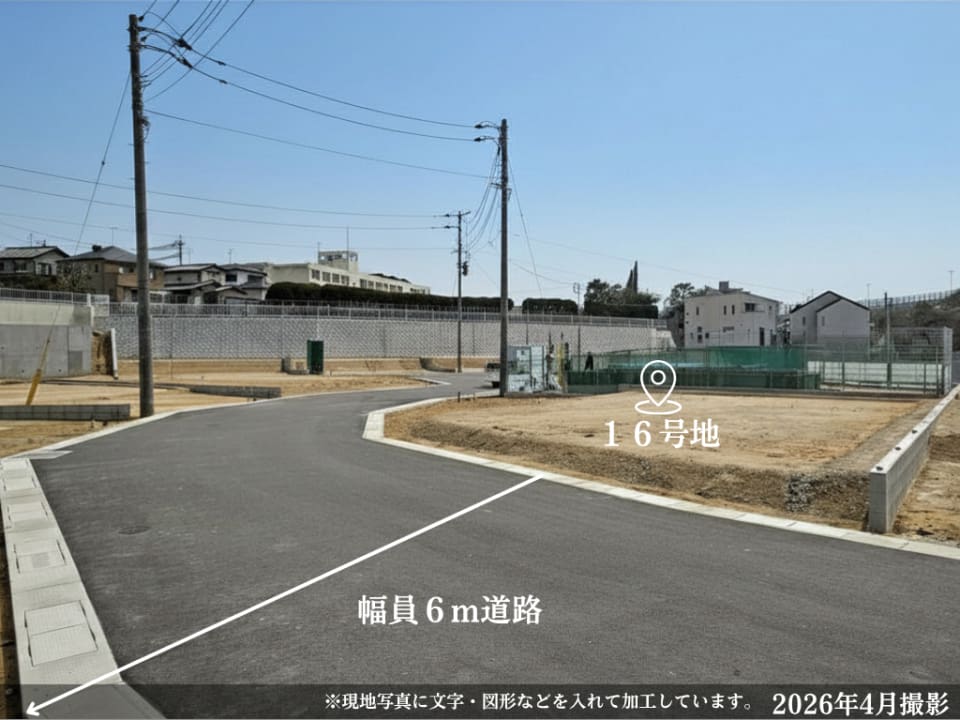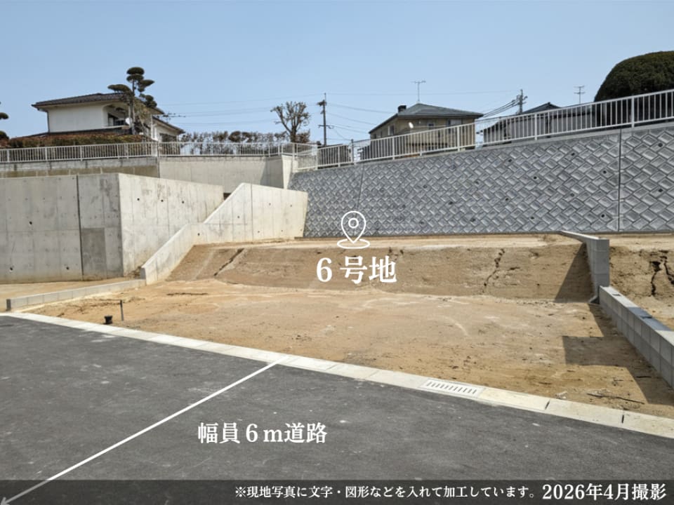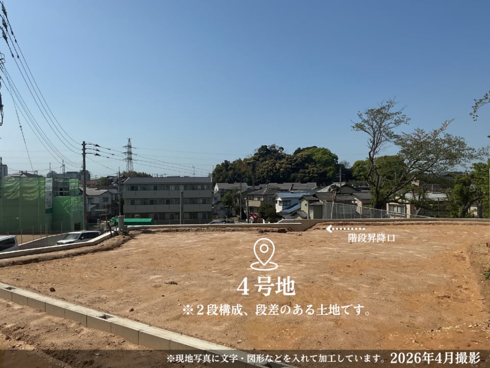 4号地:南東方向より撮影 分譲地を見渡せる高台土地で開放感を感じれる土地です。