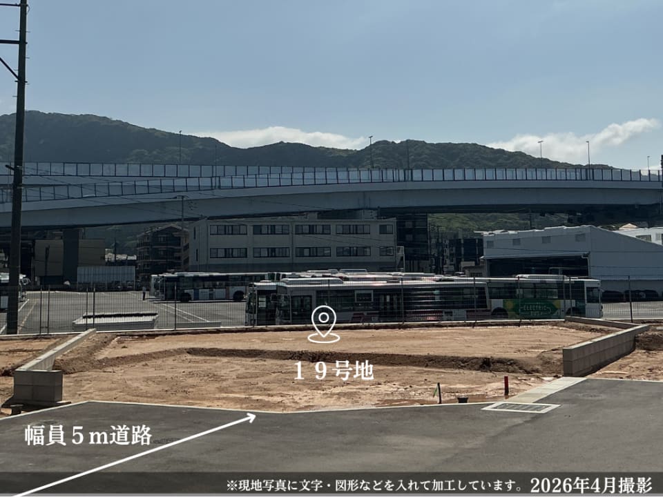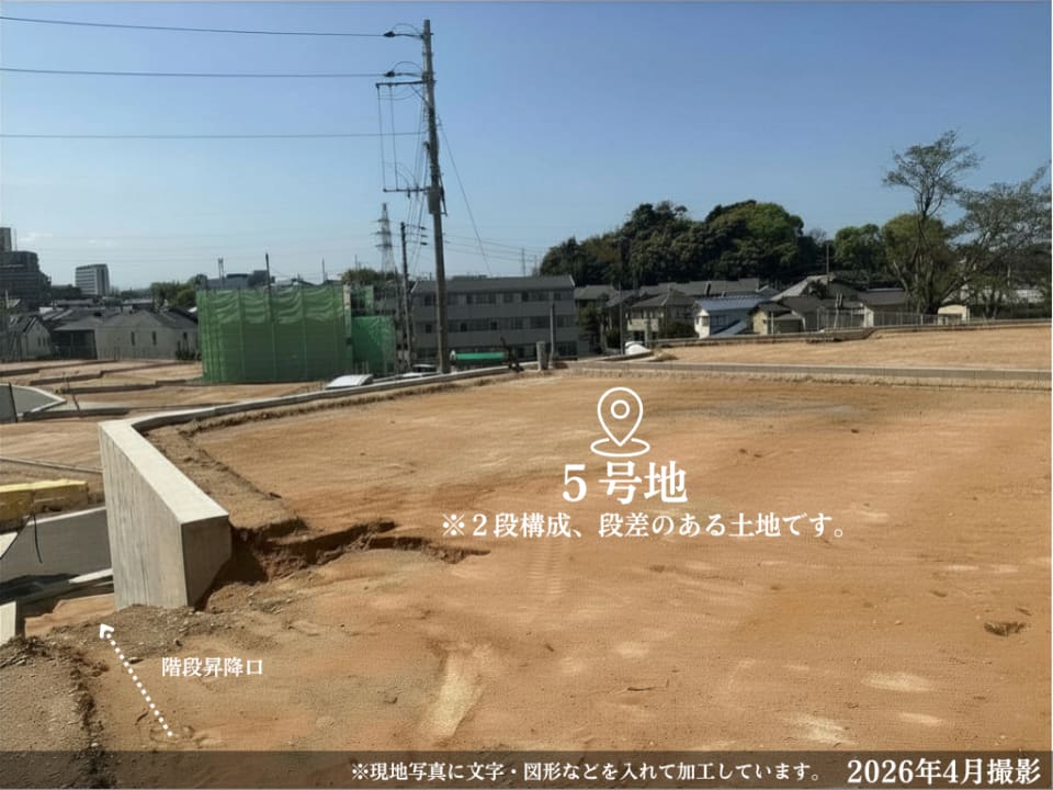5号地:北東方向より撮影 分譲地を見渡せる高台土地で開放感を感じれる土地です。