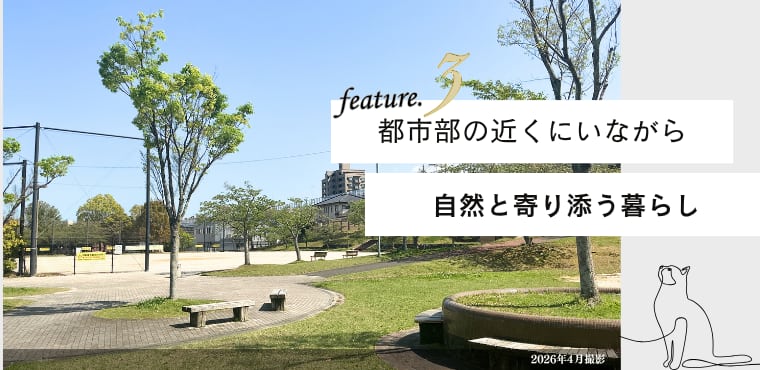 周囲より一段高い丘陵地に、丁寧に造成された分譲地で開放的な眺望と心地よい陽ざし、四季の移ろいを感じられる自然環境が、日々の暮らしにゆとりをもたらします。通過交通が少なく、静かで落ち着いた住環境。油山観光道路の西エリアに位置し、落ち着いた住宅地エリアです。