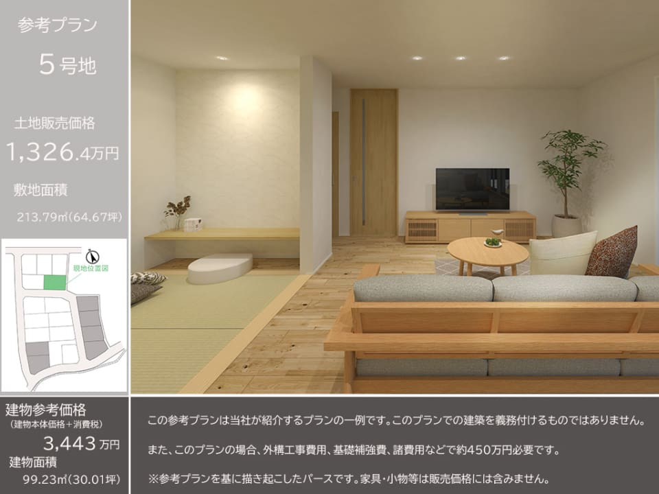 ![]() 60坪超のゆったりした土地に駐車場3台や平屋建ても計画可能。 |