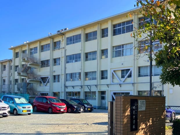 2025年4月に青峰小学校と統合し、全校生徒数576名になっています。(2025年10月撮影)