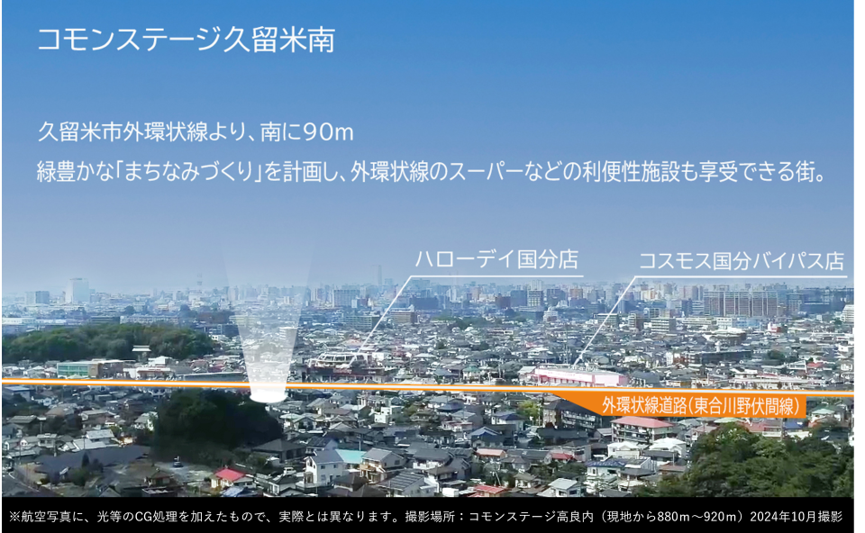 郊外型の商業施設が立ち並ぶ片道2車線の外環状線(都市計画道路東合川野伏間線)バイパス通り沿いの南エリアに位置します。(2024年10月撮影)□コスモス:現地から300m~340m