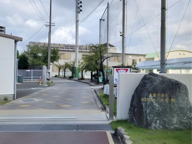 「他者と関わり合う喜びを感じ、自らを高める子どもの育成」を重点目標としています。2024年度の全校生徒数は1132名です。(2025年9月撮影)