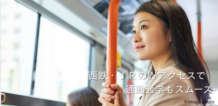 JR駅まで徒歩13分(最長)、西鉄駅まで13分(最長・バス利用)