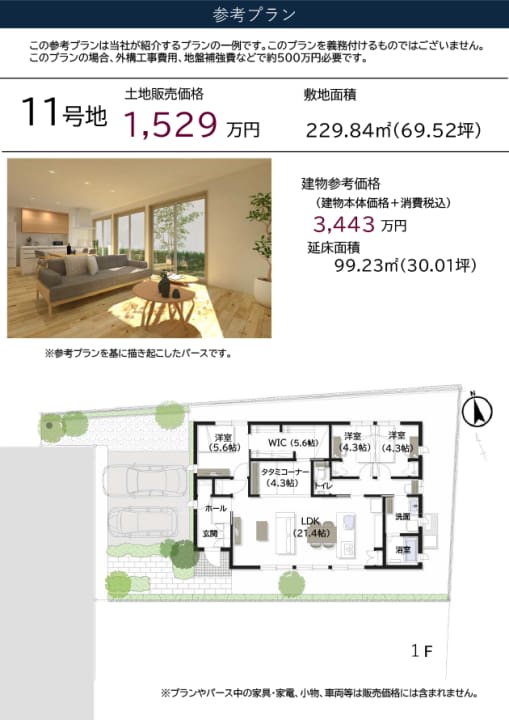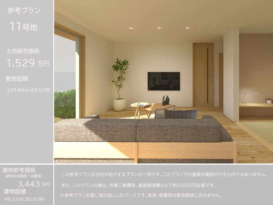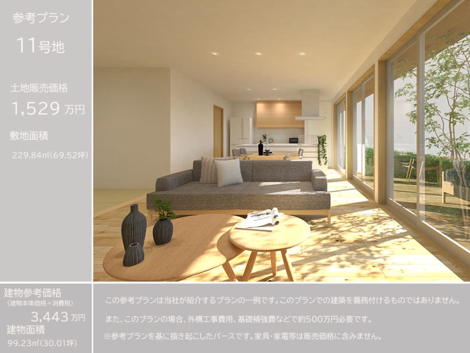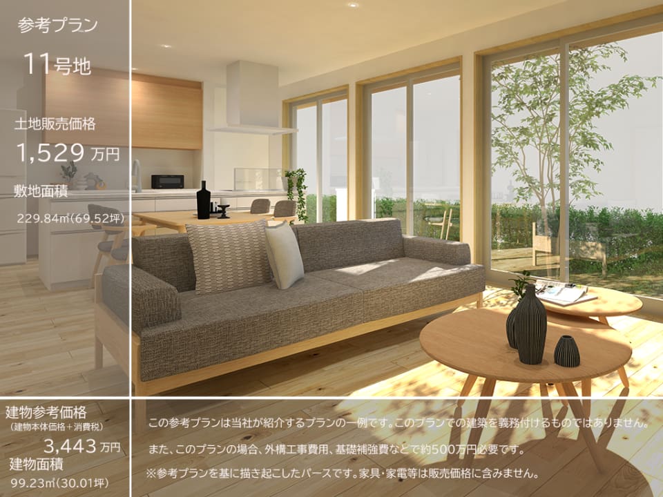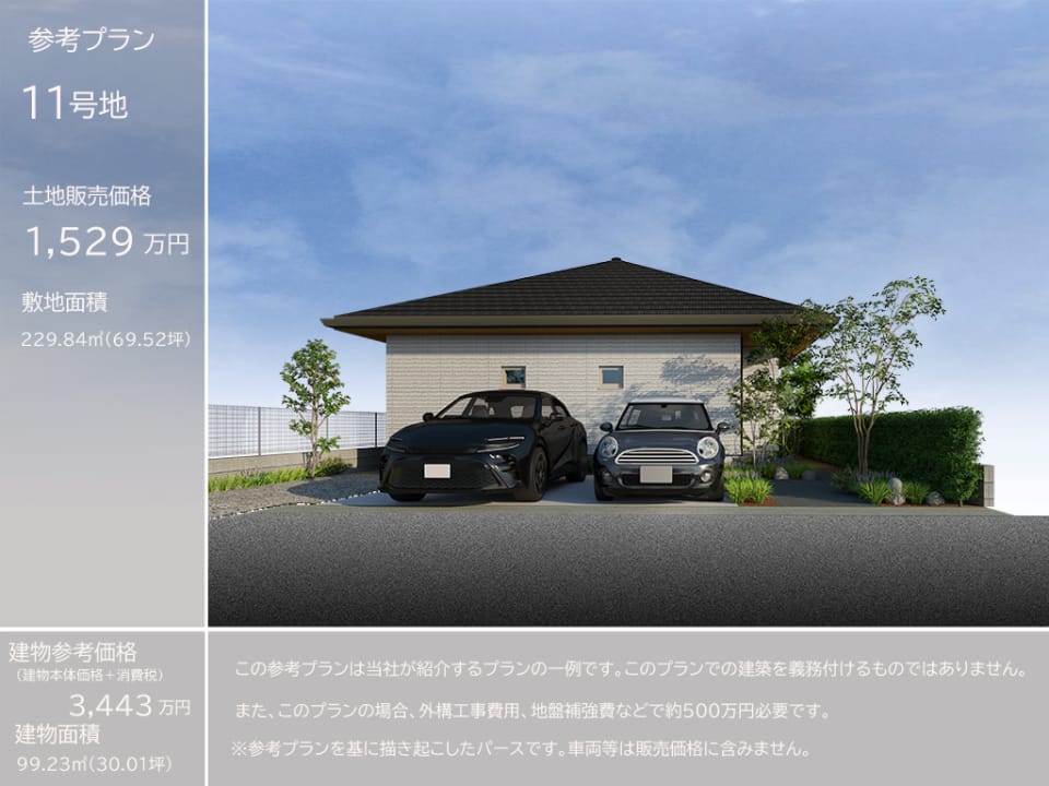 11号地 土地69.52坪、販売価格1,529万円(坪22.0万円)