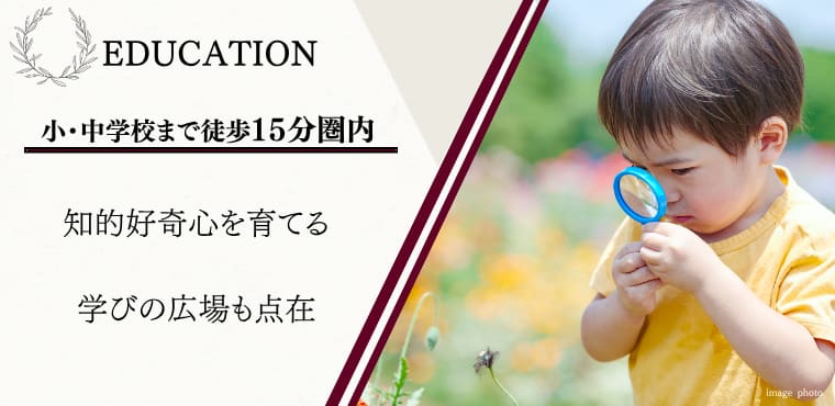 小・中学校まで徒歩15分圏内。久留米市美術館:徒歩12分~13分(940m~1020m)や青少年科学館:徒歩20分~21分(1600m~1680m)なども付近にあり、子供の好奇心が高められます。