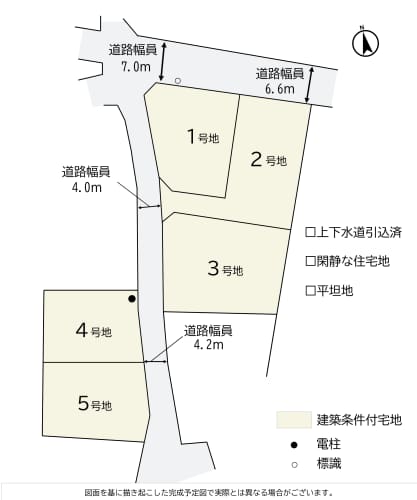 2号地:幅員6.6m道路と幅員4m道路の二方向に接道