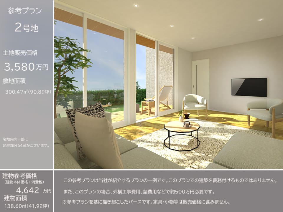 300.47㎡(約90.89坪) 土地価格3,580万円(坪39.4万円)