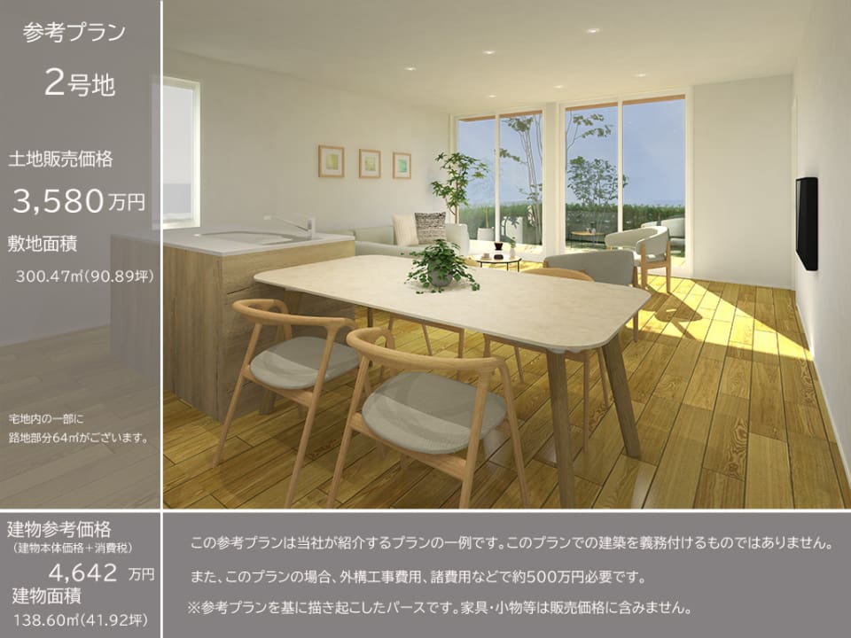 2号地300.47㎡の内、路地部分64㎡を含みます。
