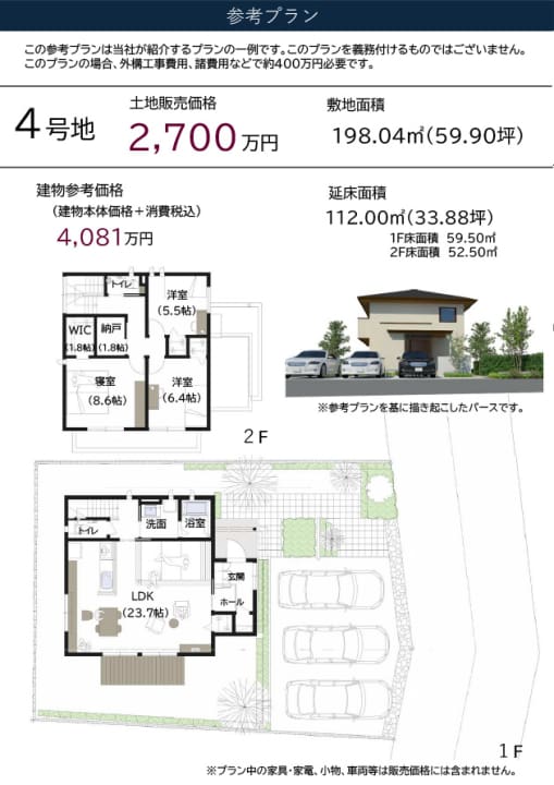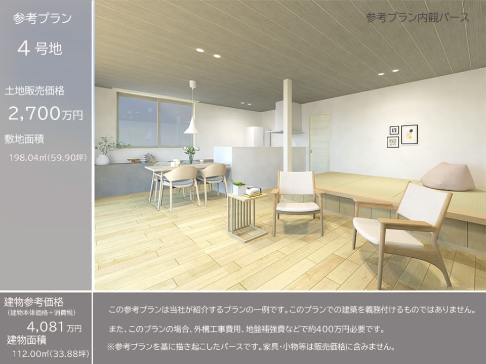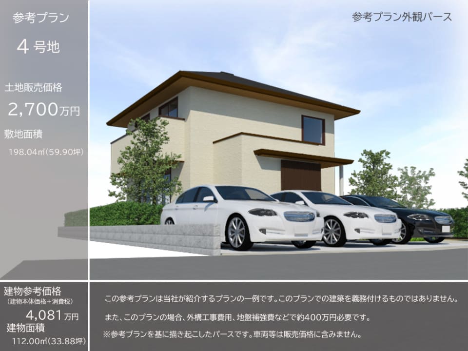 4号地:比較的交通量少ない幅員4m道路に接道