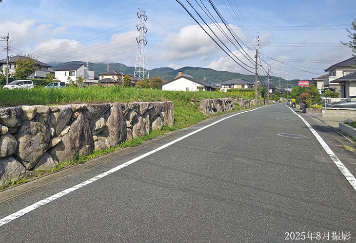 ![]() 分譲地自然石施工 敷地の一部に自然石を使用した施工が施されており、趣のある景観が魅力の宅地です。外構の一部に天然素材を取り入れることで、周囲の自然環境と調和した落ち着きある住まいづくりが可能です。写真は129街区。 |