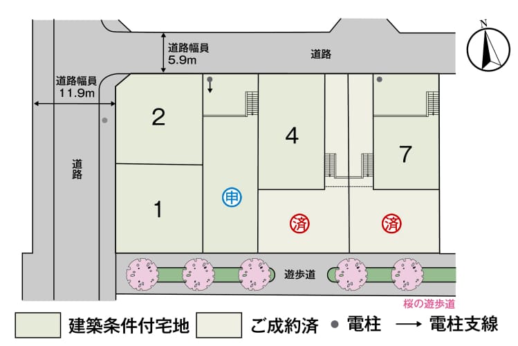 分譲地南側に桜の遊歩道があり、四季の移ろいを愉しめます。