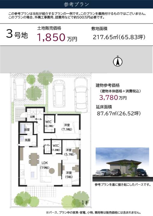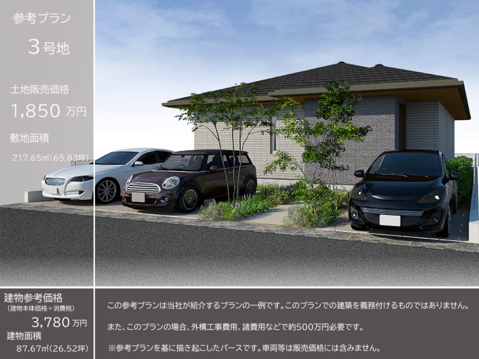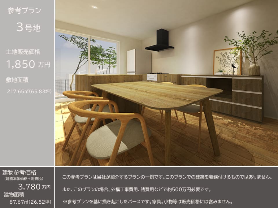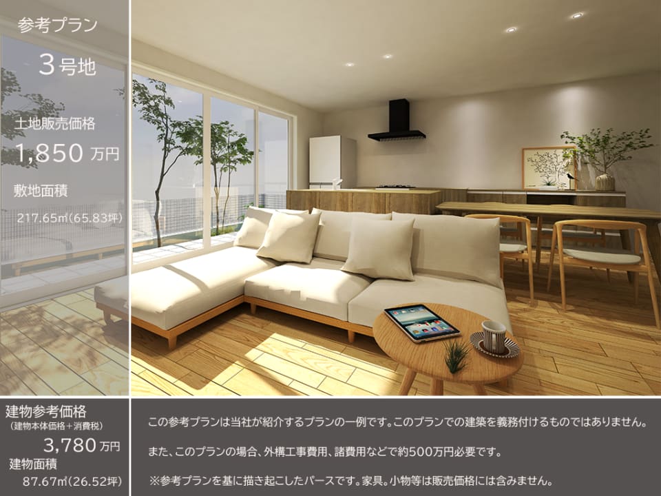 3号地 65.83坪 土地販売価格1,850万円(坪28.2万円)