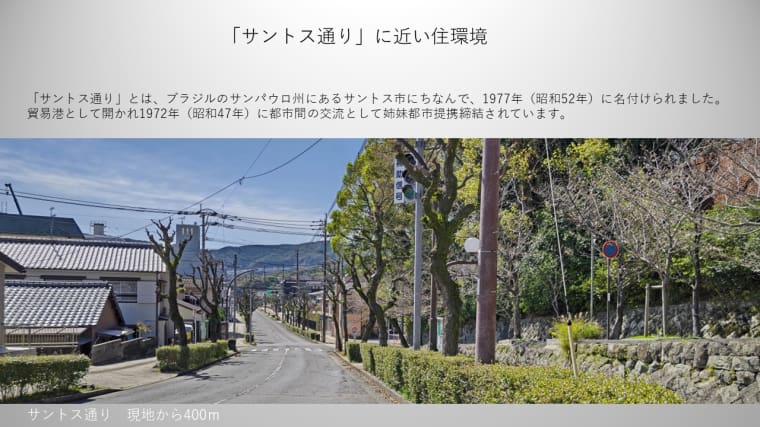 ![]() 長崎市内を走る国道206号線から大橋交差点よりサントス通りに入り、四つ角の交差点を北方向に進むと現地となります。(2024年3月撮影) |