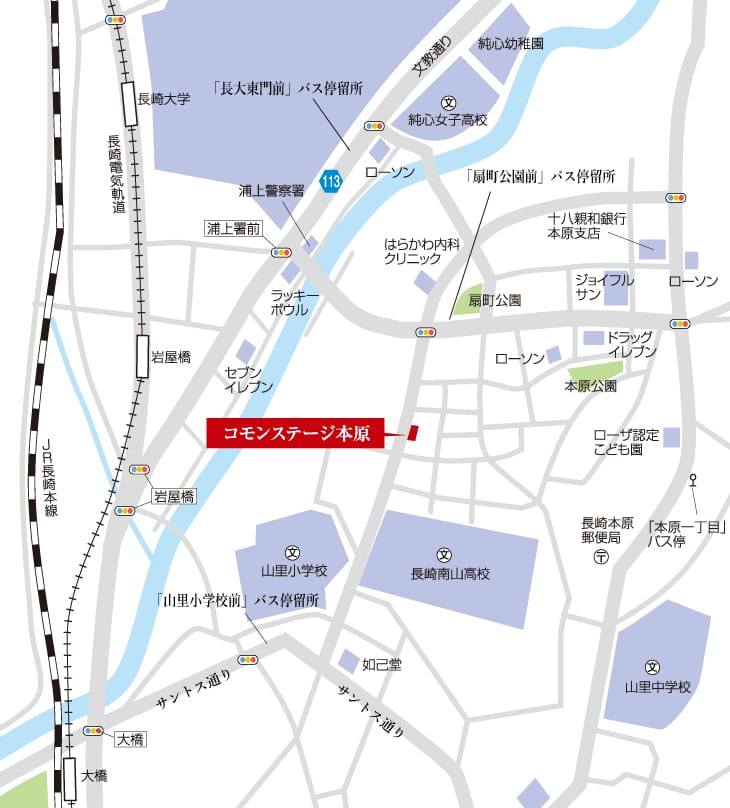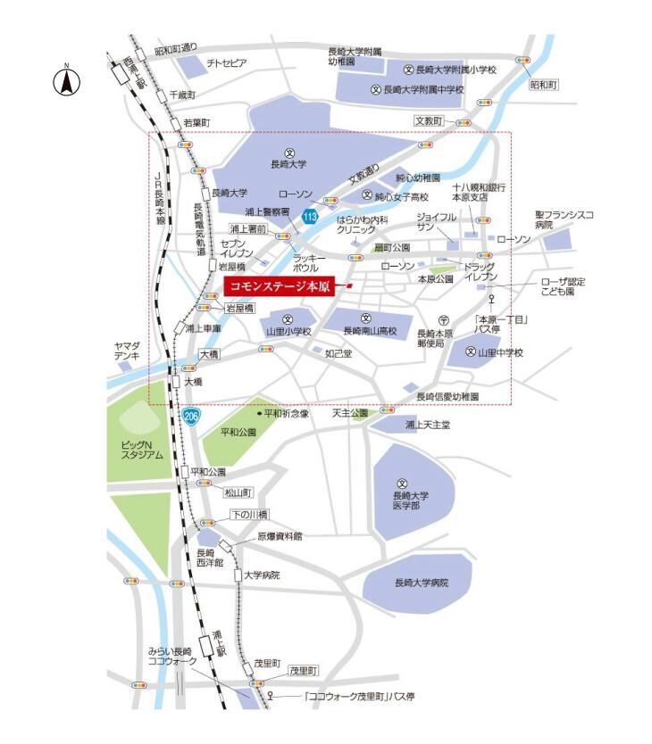 長崎駅方向や川平有料道路の中間エリアに位置する立地
