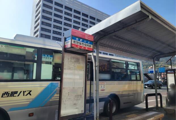 西肥バス「佐世保駅前」バス停まで乗車時間8分~10分。