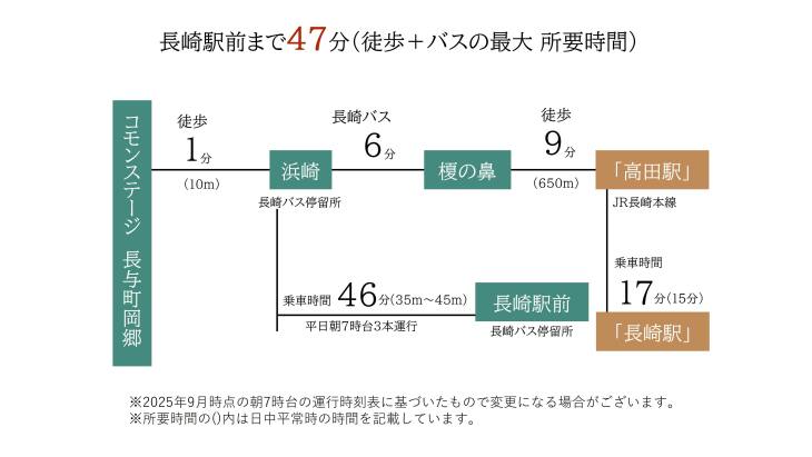 長崎駅前まで47分(徒歩+バスの最大所要時間)
